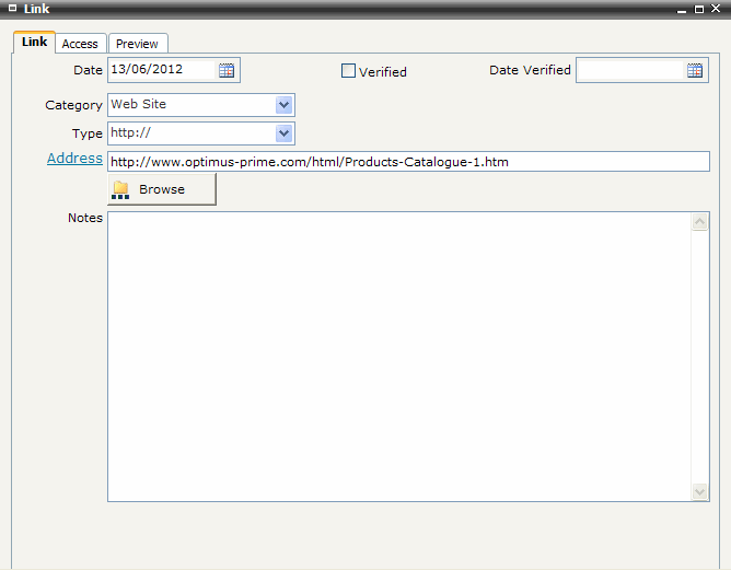The Access tab on the Links screen is designed for entry and display of DRM details that restrict or control access to link. Date elements include: